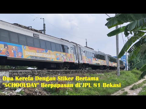 Dua Kereta Berstiker SCHOOLDAY Berpapasan di JPL 81