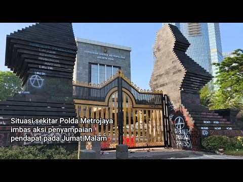 Situasi sekitar Polda Metrojaya imbas aksi penyampaian pendapat pada Jumat Malam